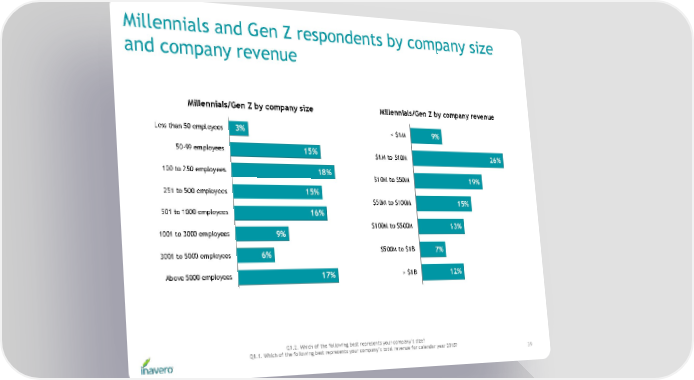 Millennials and Gen Z respondents by company size and company revenue Q1.2. Which of the following best represents your company’s size? Q1.1. Which of the following best represents your company’s total revenue for calendar year 2018? 39